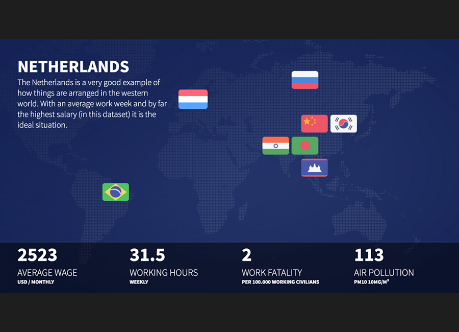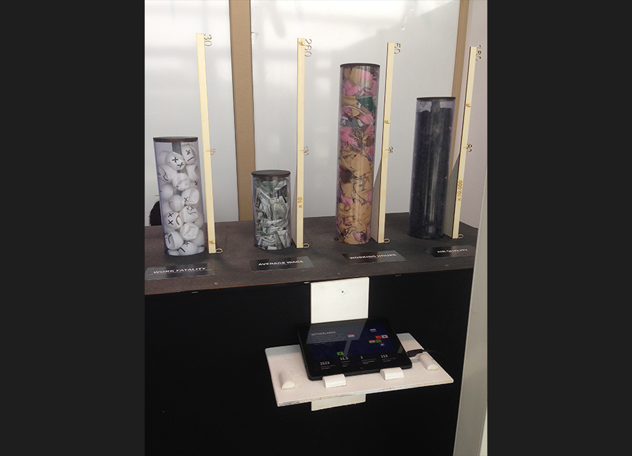 The Human Cost Exhibit presented for the final module of the Creative Technology Bachelor program at University of Twente aims to highlight the consequences of cheap production, in terms of both environmental and human costs. The work is divided among a group of 16 students, and includes a VR experience of monotonous factory work aiming to inform the visitors, before presenting them with an interactive installation that highlights data on the labour conditions around the world. My contribution to the project mostly involved planning and reporting as well as helping out with the physical process of constructing the presentation booth.