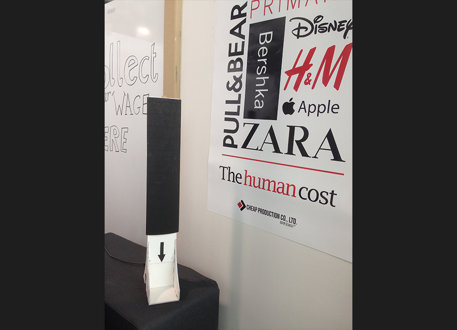 The Human Cost Exhibit presented for the final module of the Creative Technology Bachelor program at University of Twente aims to highlight the consequences of cheap production, in terms of both environmental and human costs. The work is divided among a group of 16 students, and includes a VR experience of monotonous factory work aiming to inform the visitors, before presenting them with an interactive installation that highlights data on the labour conditions around the world. My contribution to the project mostly involved planning and reporting as well as helping out with the physical process of constructing the presentation booth.